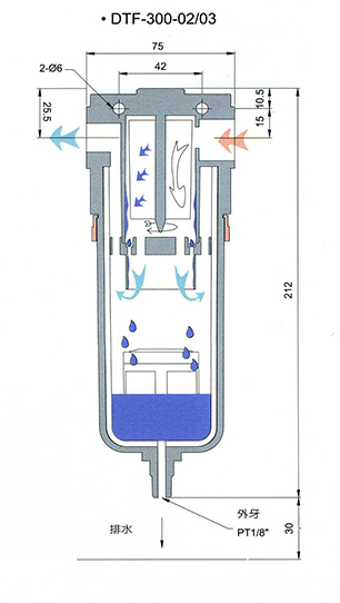 - Compact design, suitable for all kinds of compressed air piping of the filtered occasions.