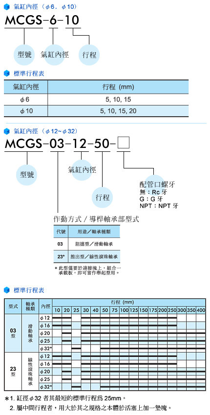 - Bores : φ 6 ~ 63 ( mm ) 。